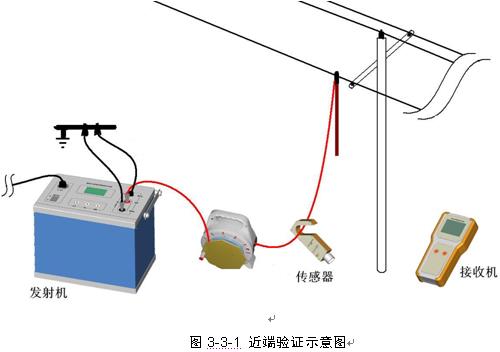 為了驗(yàn)證設(shè)備是否正常、驗(yàn)證故障線路的選線和選相是否正確、以及本線路是否符合設(shè)備的測試條件,建議在發(fā)射機(jī)端對傳感器和接收機(jī)進(jìn)行一次近端現(xiàn)場驗(yàn)證,如圖3-3-1所示: