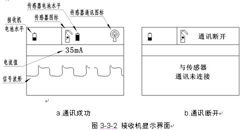 接收機(jī)采用大屏幕液晶顯示器,顯示傳感器狀態(tài)、電流波形和電流值。