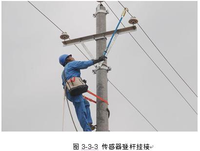 為快速逼近故障點(diǎn),建議進(jìn)行50%法或0.618黃金分割法分段。以50%法為例,首先選擇在線路中點(diǎn)處登桿,用絕緣桿將傳感器掛接在故障線路的故障相,掛接應(yīng)盡量保持穩(wěn)定,如圖3-3-3所示: