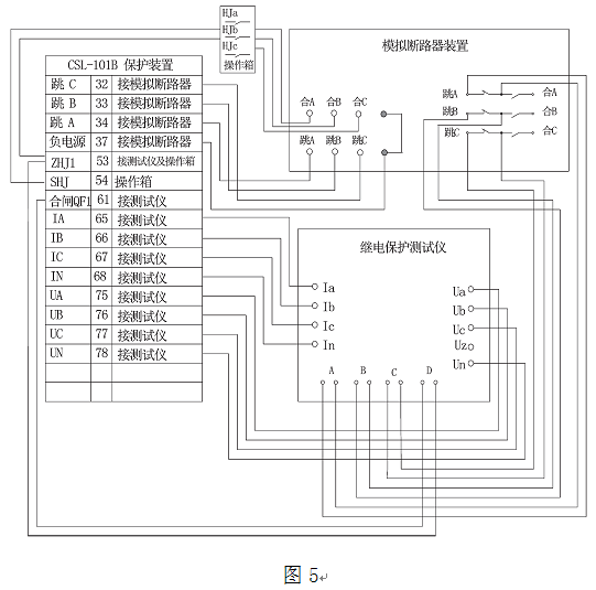 1、試驗(yàn)接線 斷路器模擬裝置開出量是以單跳閘線圈Ⅰ的接點(diǎn)為例,見圖5。